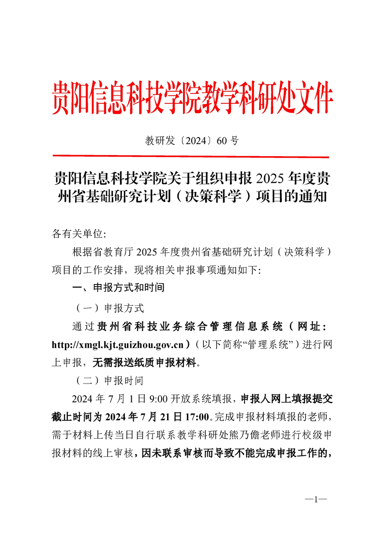 pp电子官方网站关于组织申报2025年度贵州省基础研究计划(决策科学)项目的通知