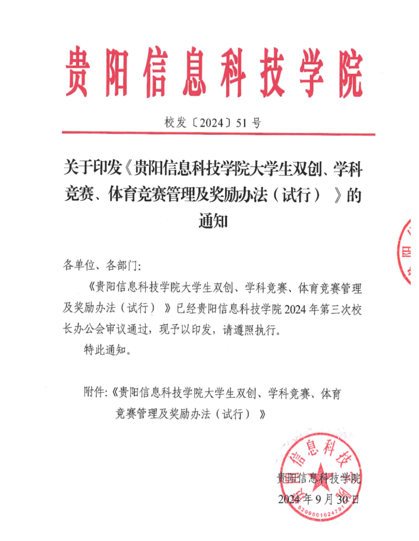 校发〔2024〕51号-关于印发《pp电子官方网站大学生双创、学科竞赛、体育竞赛管理及奖励办法(试行) 》的通知.doc