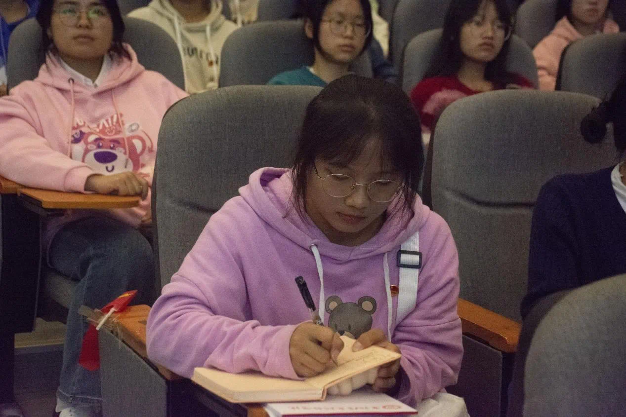 唐建荣教授围绕党不怕牺牲、不懈奋斗、理论探索、为民造福以及自我革命的五个辉煌历史阶段,深情讲述了党的百年奋斗历程。从开天辟地救国到改天换地兴国,再到翻天覆地富国、惊天动地强国,党始终走在时代前列,引领着中华民族不断前进,贵科学子从一字一句中感受着党的伟大和正确,深刻领会了中国共产党为什么“能”、马克思主义为什么“行”、中国特色社会主义为什么“好”等重大问题。