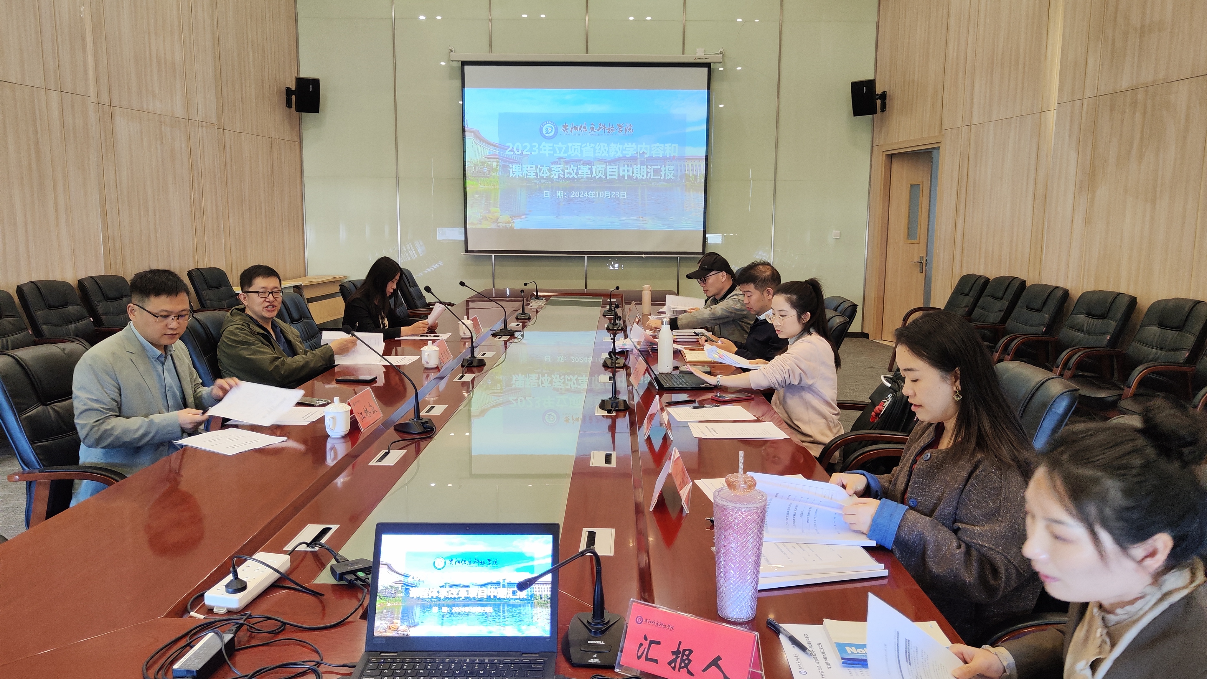 2024年10月23日中午12:30,pp电子2023年立项贵州省教学内容和课程体系改革项目中期检查汇报工作在图书馆一号会议室顺利开展。出席会议的有教学科研处处长王志康教授,经济管理学院杨应旭副教授,公共教学部江林焱副教授。6位教改项目汇报人及教学科研处工作人员参加了会议,会议由教学科研处处长王志康主持。