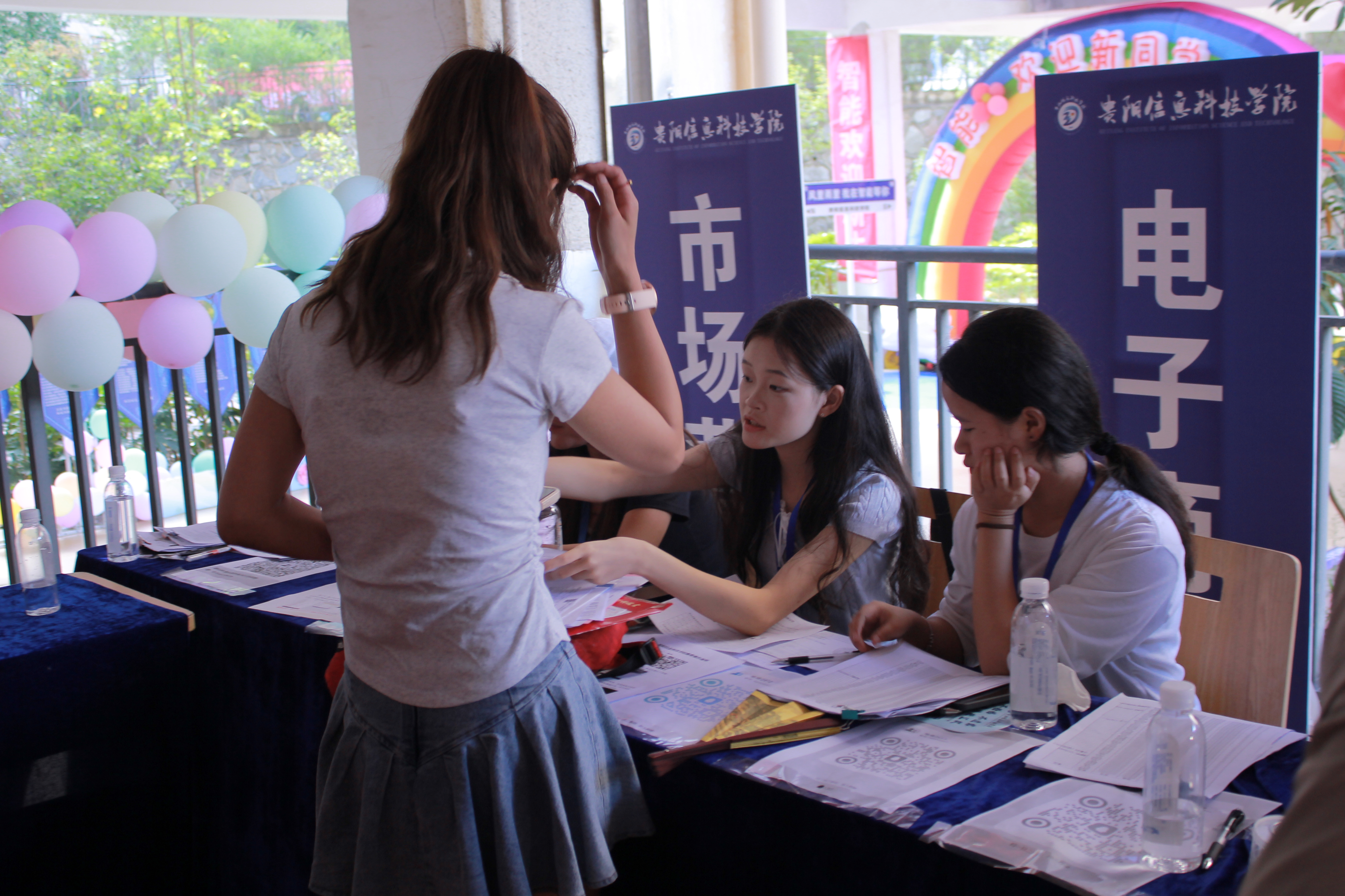 迎新现场,迎新工作人员统一佩戴工作证,面带笑容,信心满满地穿梭在各工作岗位上为新生服务和答疑解惑,迎新工作人员有的在新生报到注册点耐心指导新生顺利完成报到、注册、缴费相关事宜。还有在咨询服务台,为新生提供学习、生活、社团活动等的咨询服务,帮助新生更好地了解大学生活。有的则是协助新生搬运行李帮助其顺利入住寝室,并在搬运行李过程中详细地为新生每一位介绍入住手续、入住规则及生活指南。迎新工作人员通过无微不至的关心和积极的引导,让刚踏入校园的新生们感受到经济管理学院这个大家庭的温暖,帮助其快速融入新环境,感受经济管理学院文化的独特魅力。
