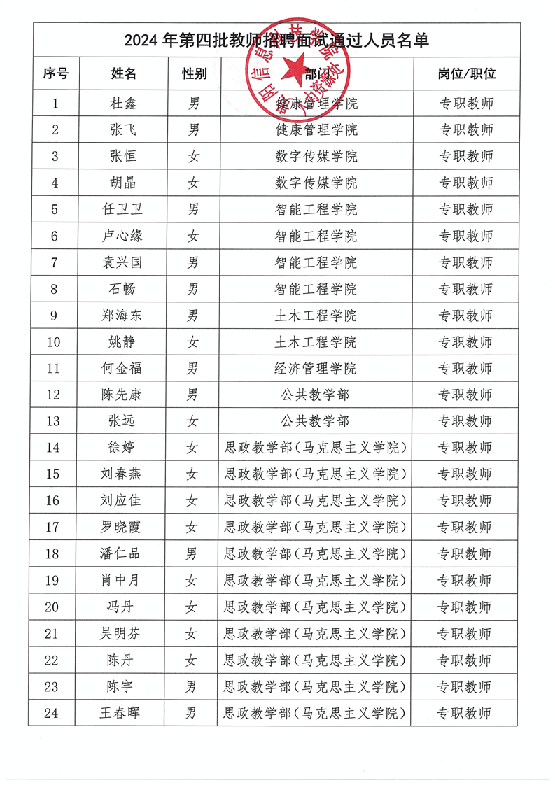 关于pp电子官方网站2024年第四批教师招聘面试通过人员名单公示