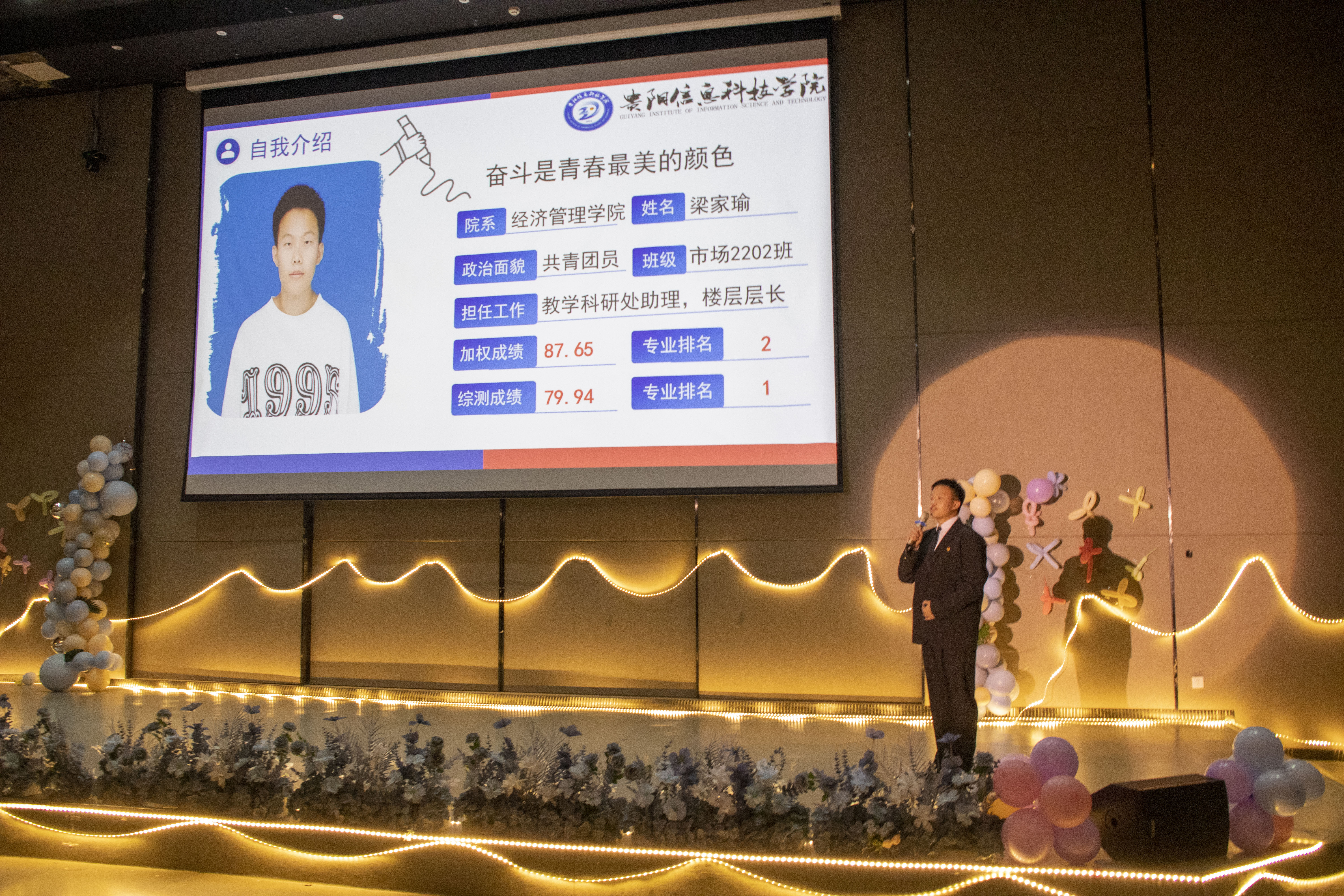 活动前期,经过严格的综合考察、材料核查及学院审核,最终筛选出11名候选人。风采展示环节高潮迭起,11位候选人按照抽签顺序依次登台亮相。他们通过个人VCR、PPT展示和现场演讲,从学习情况、专业技能、创新精神及社会服务等多个维度,全方位、多角度地展现了自己的风采。他们的演讲充满激情与活力,现场气氛热烈,掌声不断。