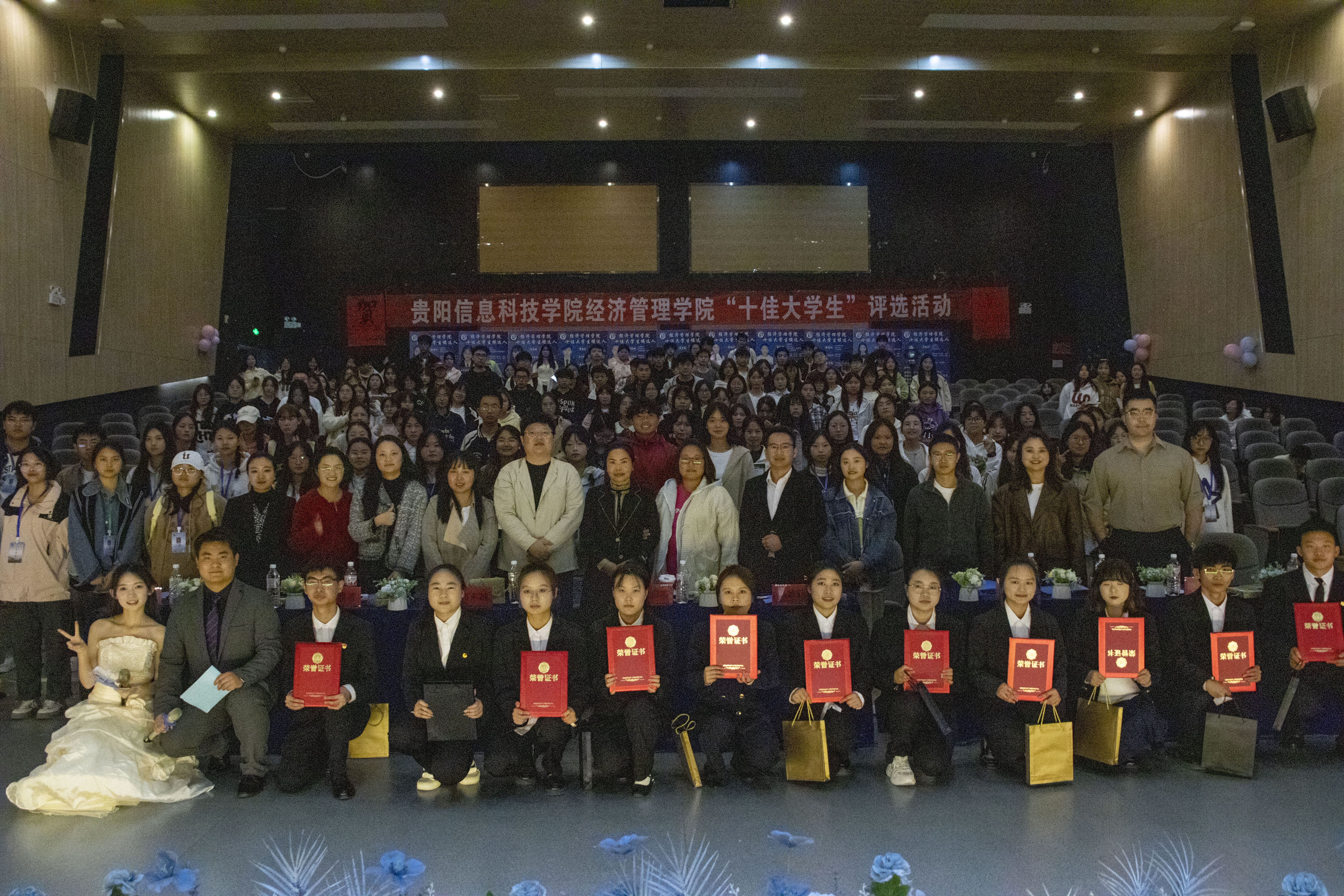 新闻网讯(供稿 董苏成 供图 倪德婉 寇潇月)为加强大学生的思政引领,树立典型,发挥榜样作用。2024年11月11日,pp电子官方网站经济管理学院于图书馆二号报告厅隆重举行“十佳大学生”评选活动。本次活动得到了学院领导的高度重视,pp电子官方网站学生处副处长郭梦轩,经济管理学院院长曹彩霞、党总支副书记莫建活、院办主任韦雅菁、学工办主任郭东越悉数出席于经济管理学院师生代表共计300余人共同见证这一盛况。