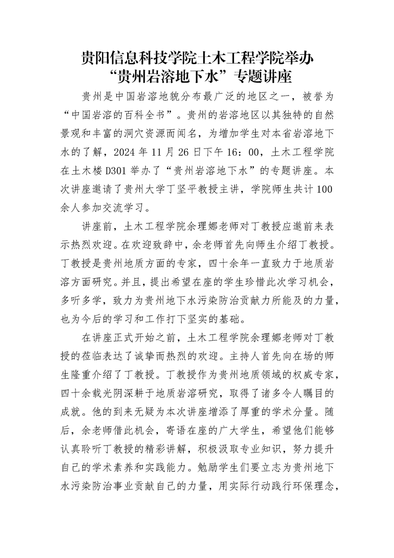 pp电子官方网站土木工程学院举办 “贵州岩溶地下水”专题讲座