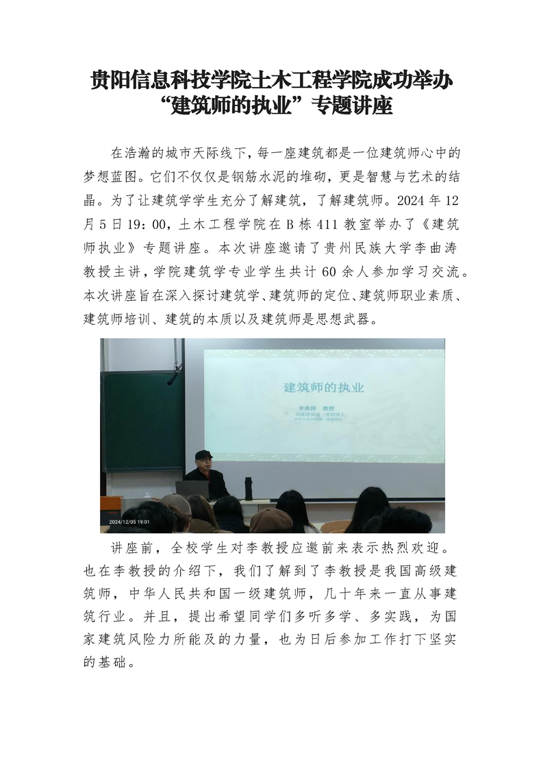 pp电子官方网站土木工程学院成功举办 “建筑师的执业”专题讲座