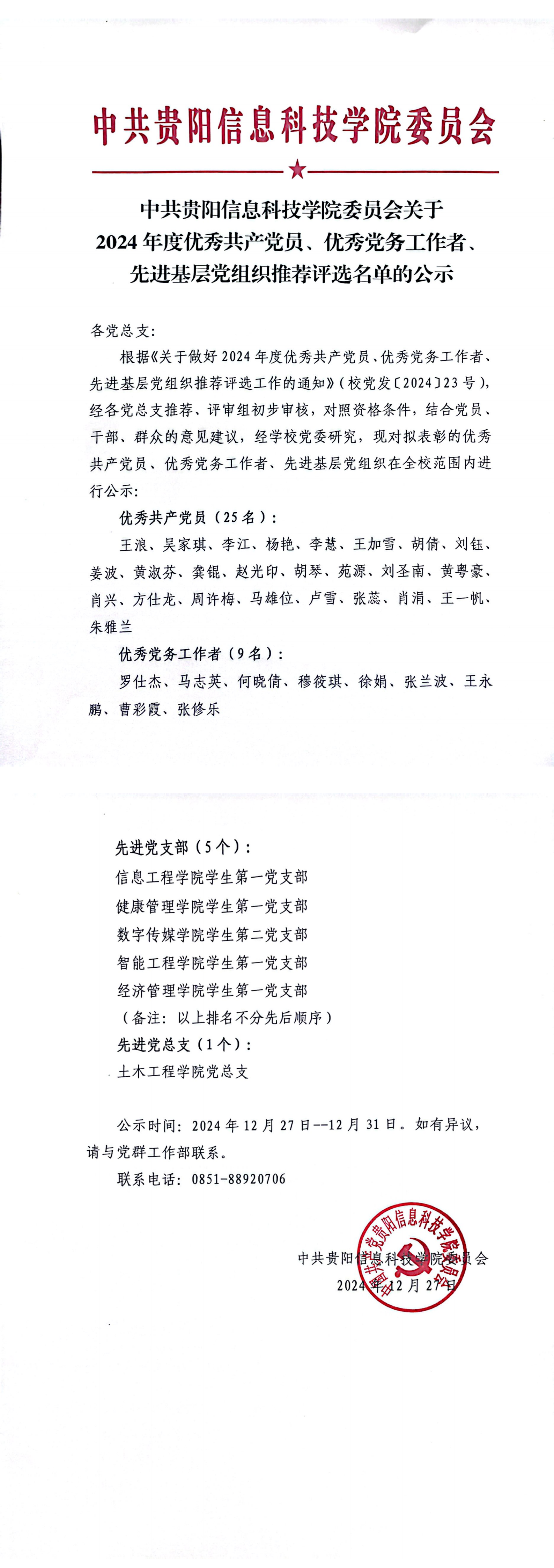 中共pp电子官方网站委员会关于2024年度优秀共产党员、优秀党务工作者、先进基层党组织推荐评选名单的公示