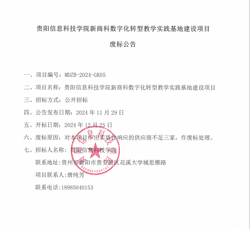 pp电子官方网站新商科数字化转型教学实践基地建设项目废标公告