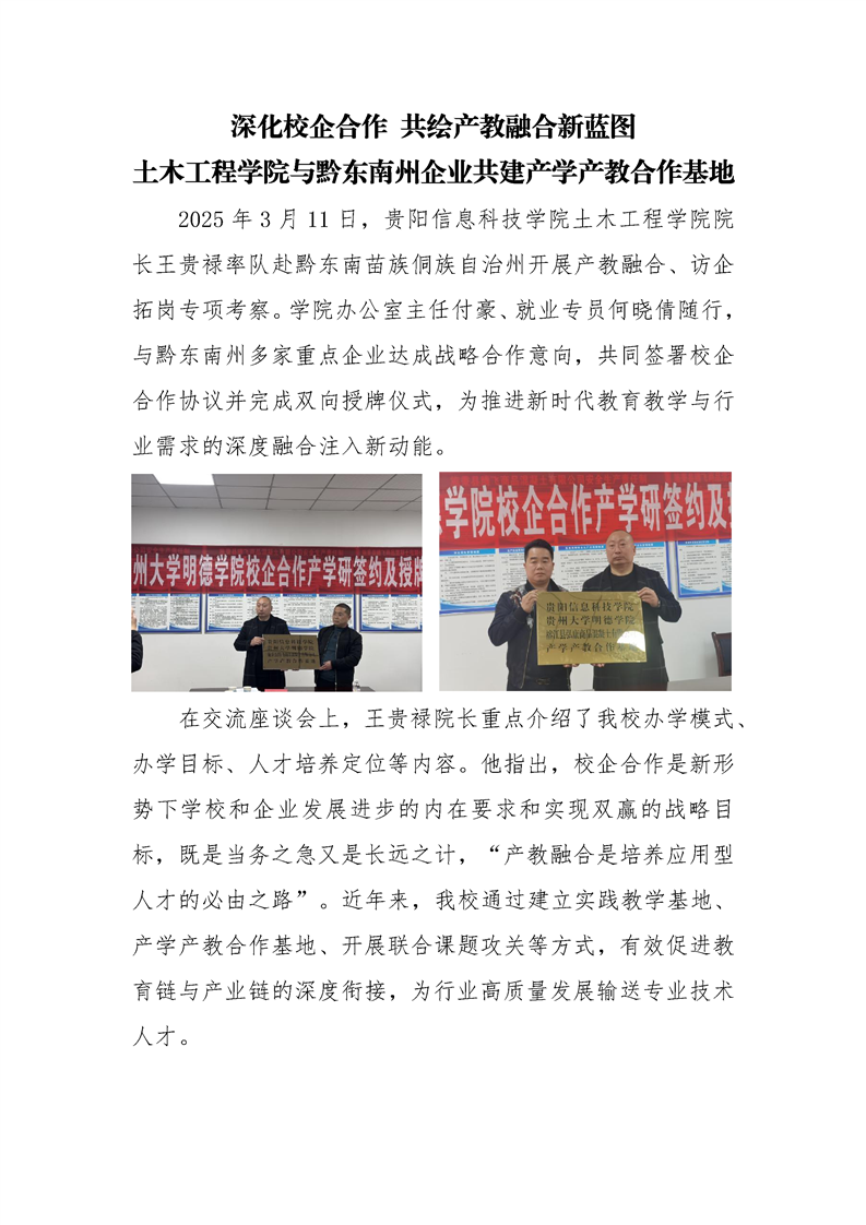 深化校企合作 共绘产教融合新蓝图 土木工程学院与黔东南州企业共建产学产教合作基地