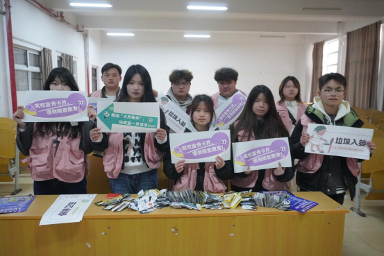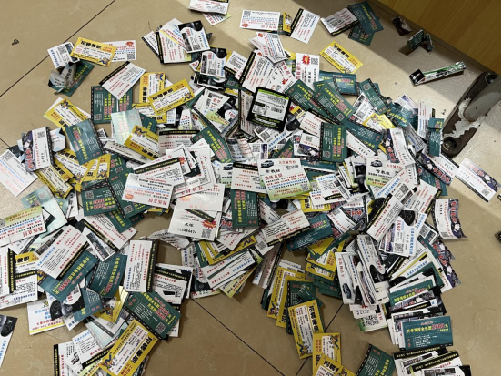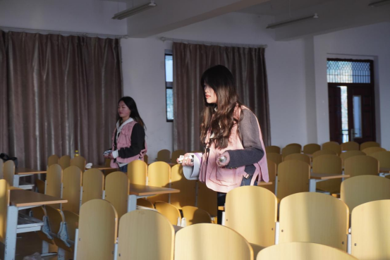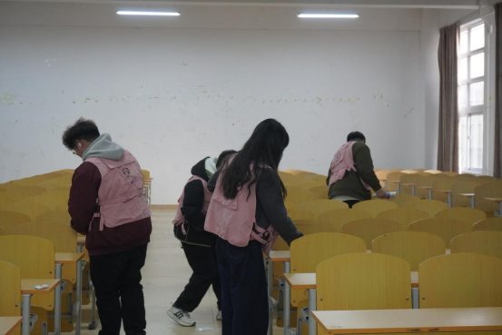 针对教室纸屑堆积、卡片遍地的情况,学生会成员化身“环境卫士”,进入传媒楼教室打扫卫生。对课桌缝隙、窗台边角堆积的驾校宣传卡片进行清除,同学们蹲身细查,用手将卡片捡起;对散落的饮料瓶、零食袋进行分类回收,通过同学们的悉心打扫、教室迎来了崭新的面貌。此次参与活动的同学们共收集300余张,同学们纷纷感慨道:焕然一新的教室真是令人耳目一新!
