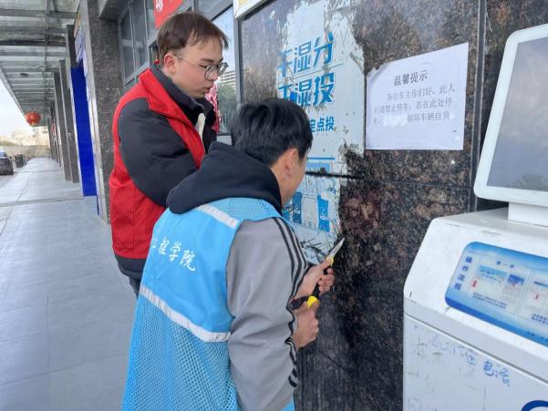 活动当天,40余名大学生志愿者在大坝井村(社区)书记吴永开与智能工程学院辅导员何必凯、周许梅两位老师的带领下,与社区工作人员紧密协作,分组开展社区卫生清理、绿化带维护、公共设施小广告清除等工作。志愿者们分成小组,重点清理了楼道墙面上的小广告。他们用铲刀一点点刮,总共清理了100多处广告。