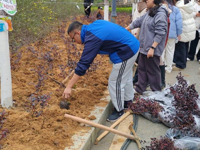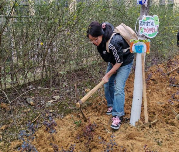 结合雷锋“艰苦奋斗”精神,我院志愿者配合校团委开展以“共‘植’一抹绿,一起‘森’呼吸”为主题的植树活动。在园林阿姨的指导下,志愿者们在F栋一楼处的空地完成约100株树苗的科学栽种,并挂上亲自绘画的祝福牌。在栽种的过程中,志愿者们分工合作,不怕苦、不怕累,在植树的过程中感悟并践行雷锋精神。