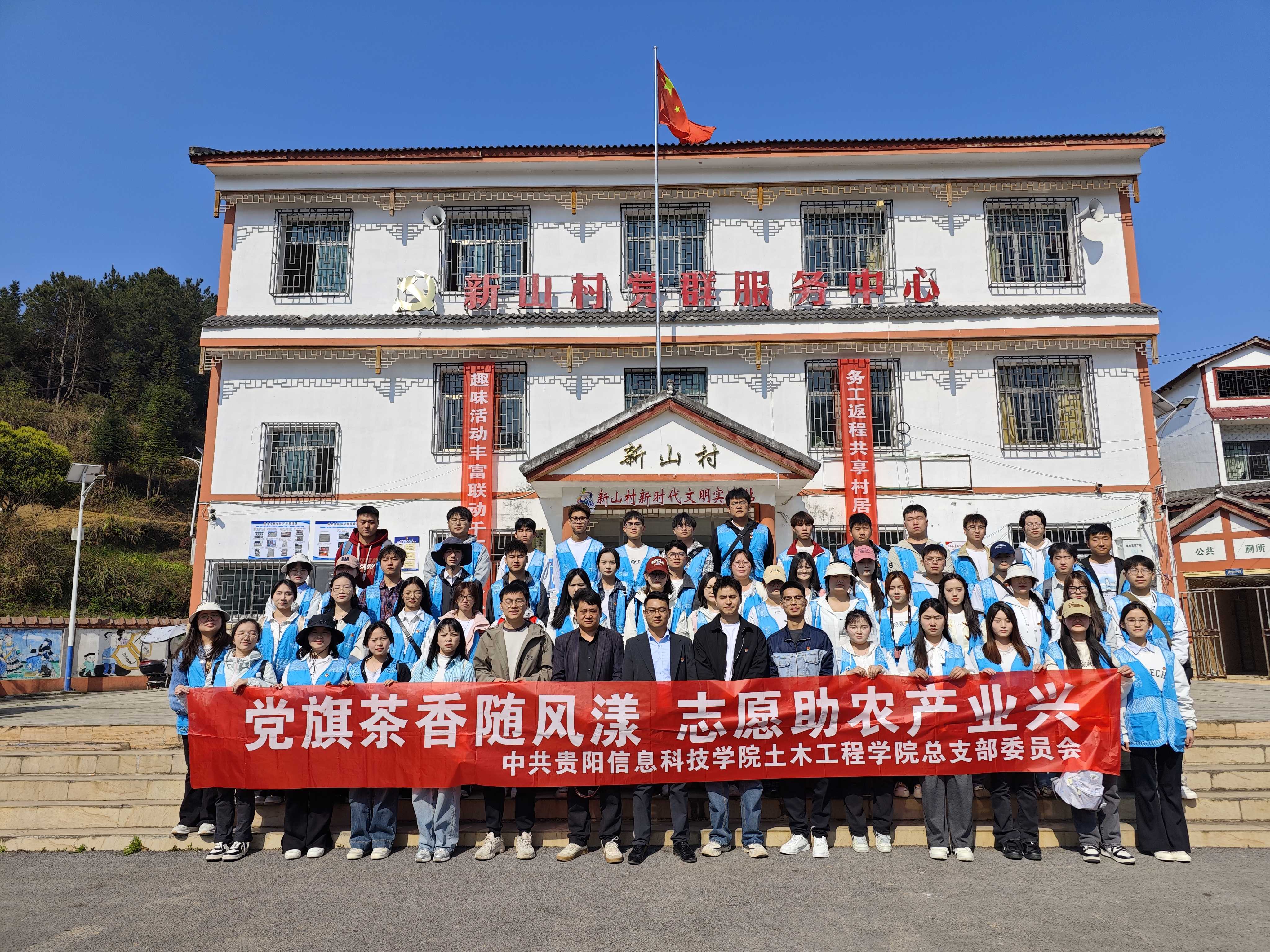 为深化学院党团建设,赓续红色血脉,构建“红色研学+劳动实践+社会服务”的立体化育人体系,3月25日,土木工程学院58名师生前往紫云县坝羊镇新山村开展“红色精神铸魂、志愿服务助农”主题实践教育活动,将红色教育、志愿服务、茶文化体验与助农深度融合。