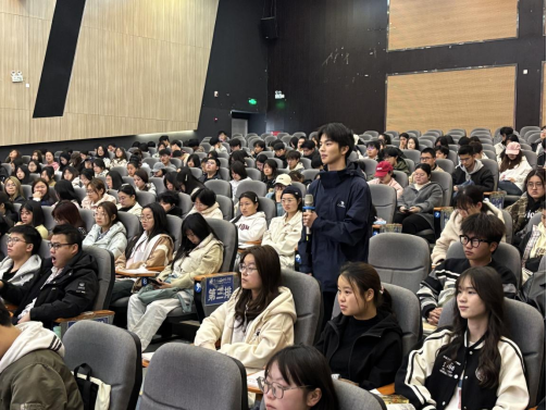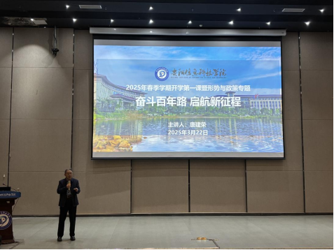 新闻网讯(供稿/供图 学校党政办)为深入学习贯彻习近平新时代中国特色社会主义思想、习近平总书记视察贵州的重要讲话精神,全面贯彻落实中共中央、国务院《关于深化新时代学校思想政治理论课改革创新的若干意见》文件精神,充分发挥领导干部在宣传党的基本理论、基本路线、基本纲领和重大政策上的示范带动作用。3月22日在图书馆二楼报告厅,唐建荣校长走进思政课堂,来到学生中间,围绕中国共产党党史,以《奋斗百年路 启航新征程》为主题为经济管理学院270位学生讲授“形势与政策”课程。