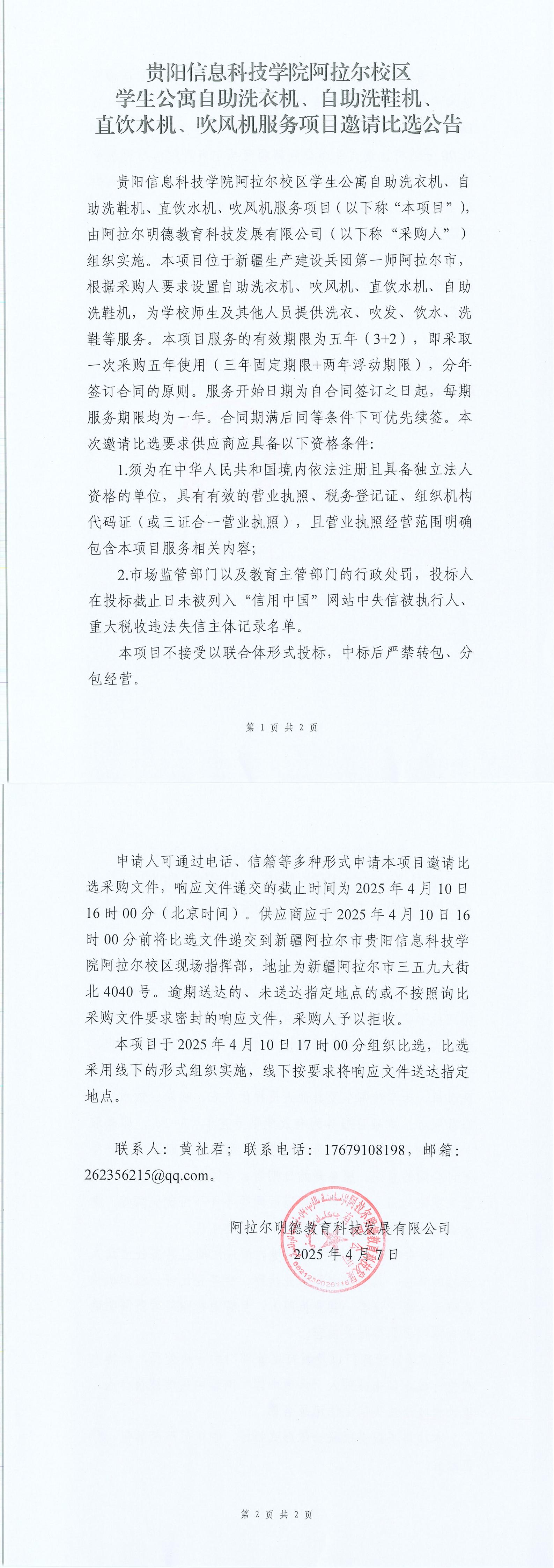 pp电子官方网站阿拉尔校区学生公寓自助洗衣机、自助洗鞋机、直饮水机、吹风机服务项目邀请比选公告
