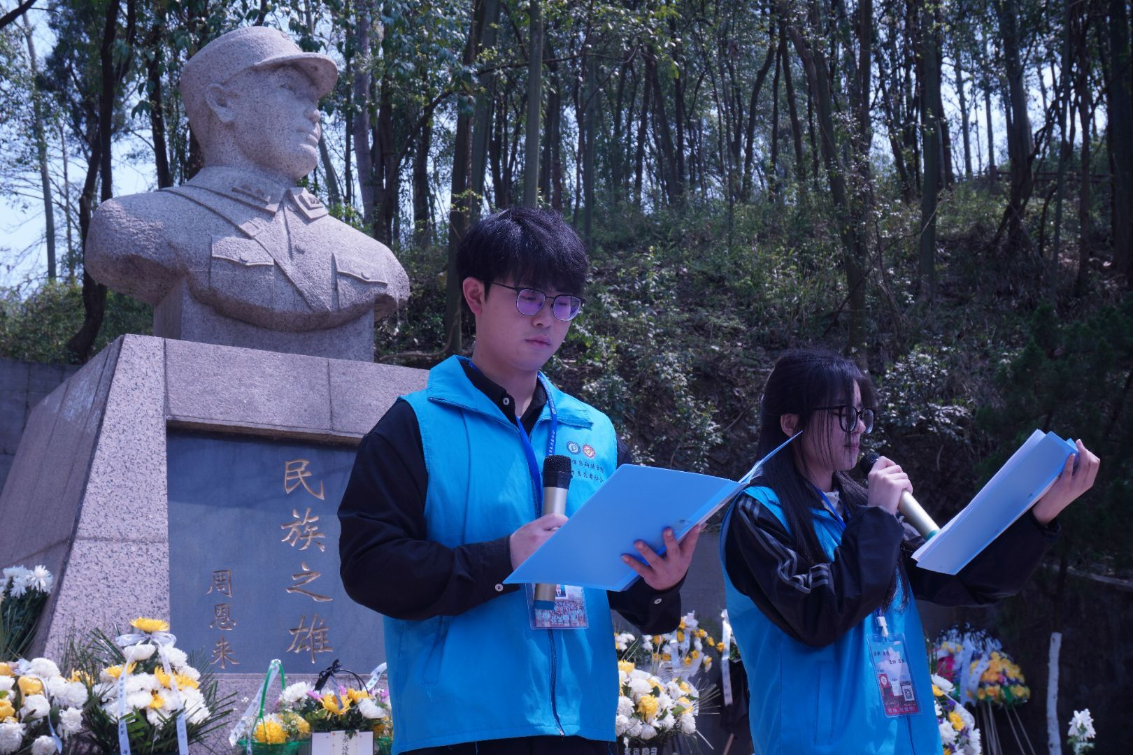 活动现场,志愿者们身着整齐服装,手持洁白菊花。每个人的脸上都写满了对将军的敬重。活动伊始,青年志愿者协会理事长龙恒代表志愿者们表达了对戴安澜将军的崇高敬意。紧接着,两位志愿者代表发表演讲,阐述吾辈当以戴安澜将军为楷模,在未来的学习和生活中,传承和发扬无私奉献、勇于担当的精神。