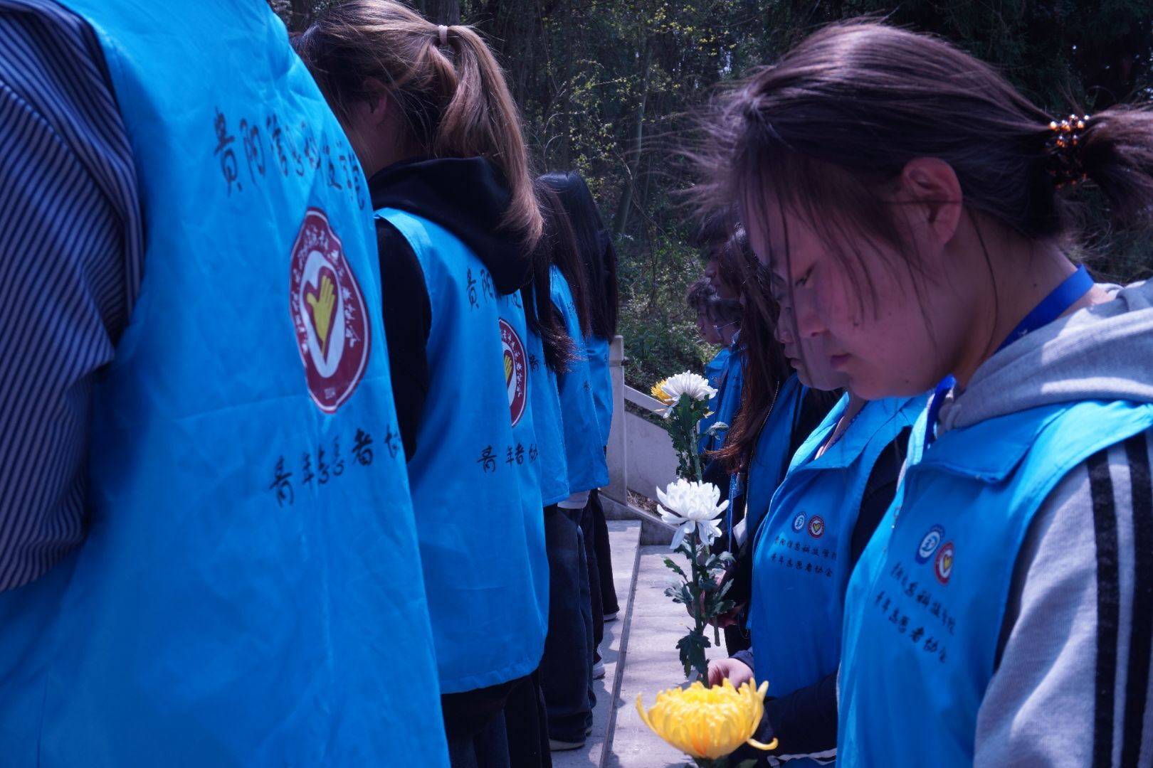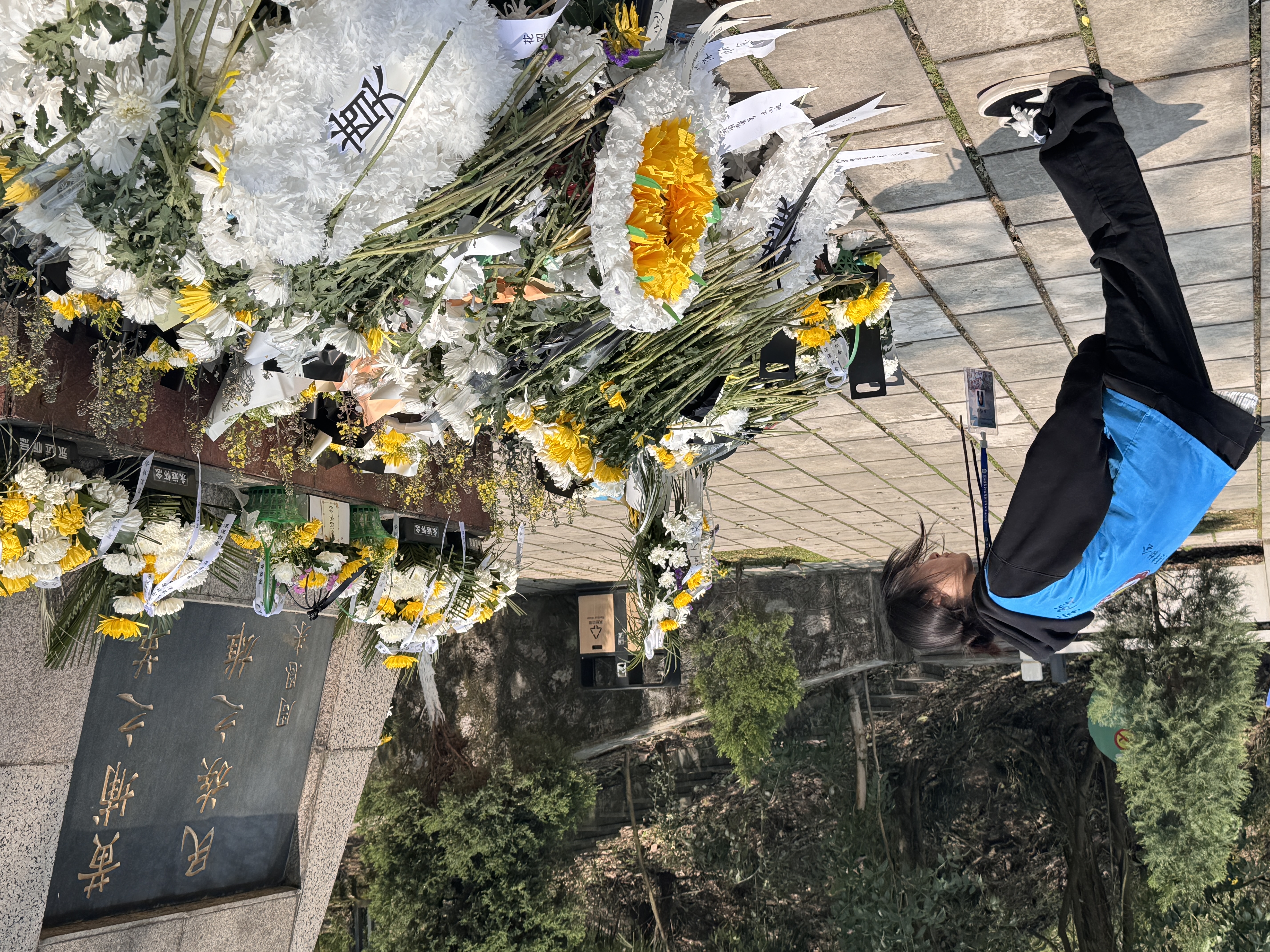 在自主祭奠环节,志愿者们手捧菊花,缓步走向将军墓前,轻轻献上手中的花,并深深鞠躬。他们或是在墓前默默伫立,或是闭上眼睛立下誓言,用自己的方式向将军表达敬意与追思。