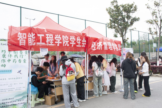 信息工程学院学生会×健康管理学院学生会:这对“技术派CP”用艾草、薄荷制作驱蚊香囊,现场演示“防虫黑科技”,吸引大批“技术粉”围观。