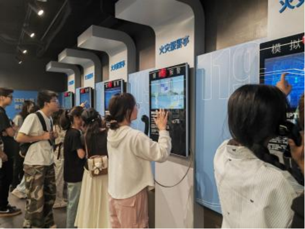 踏入教育馆,在专业讲解员的带领下,师生们依次参观了消防知识展区、器材展示区、模拟逃生实训区等核心功能区域。展馆运用前沿的三维建模技术,逼真还原了商场、住宅等典型火灾场景,配合交互式体验装置,生动演示初期火灾扑救技巧。在模拟逃生实训环节,师生们分组进行 “烟雾走廊逃生” 实战演练,严格遵循 “低姿前进、湿巾护口、扶墙撤离” 的标准逃生流程,在沉浸式体验中掌握应急避险技能。