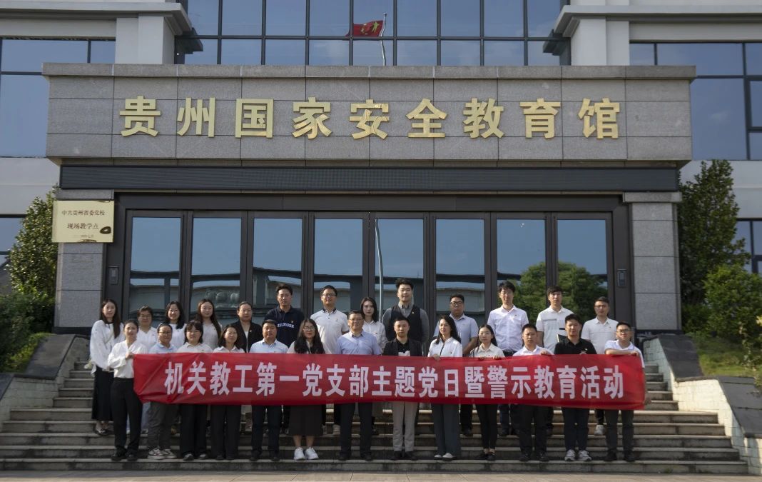 新闻网讯(供稿/供图 土木工程学院)5月20日,学校机关教工第一党支部30余名教工党员赴花溪区贵州国家安全教育馆开展了一次以“五个一”(组织一次参观学习、聆听一次专题党课、重温一次入党誓词、开展一次政治生日、回顾一次入党历程)为载体的别开生面的主题党日暨警示教育活动。省教育厅(省委教育工委)民办高校党组织书记、校党委书记邓维实以普通党员身份参加此次活动并为支部党员讲党课。活动由机关教工第一党支部书记文韵娇主持。