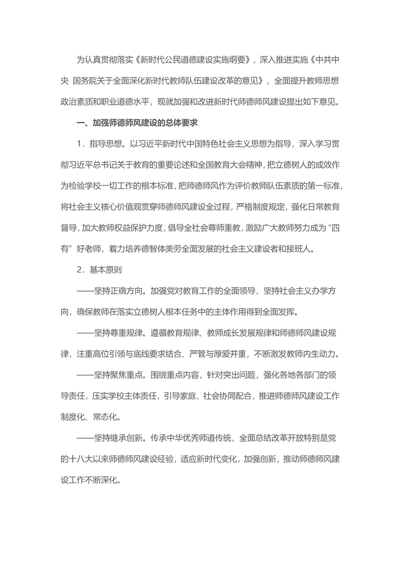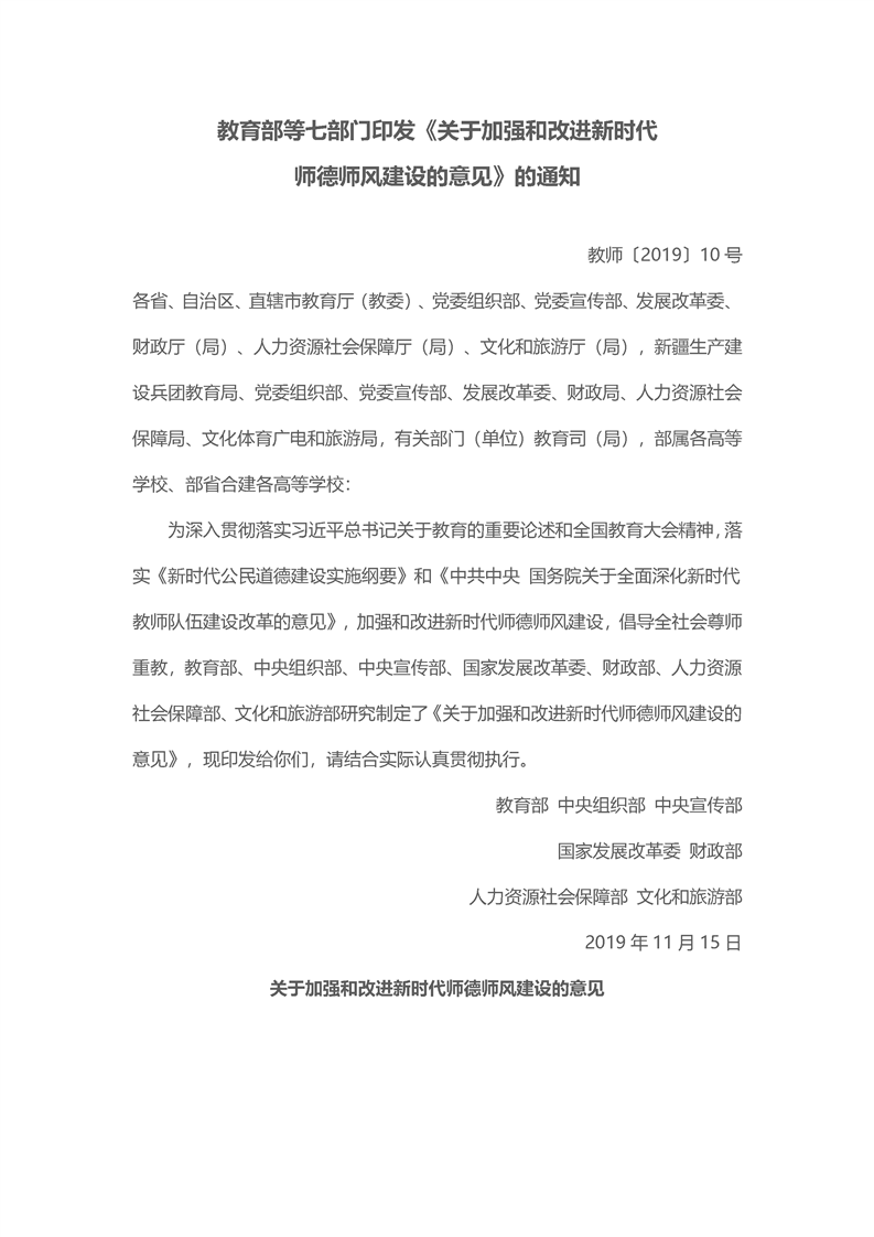 关于加强和改进新时代新时代师德师风建设的意见