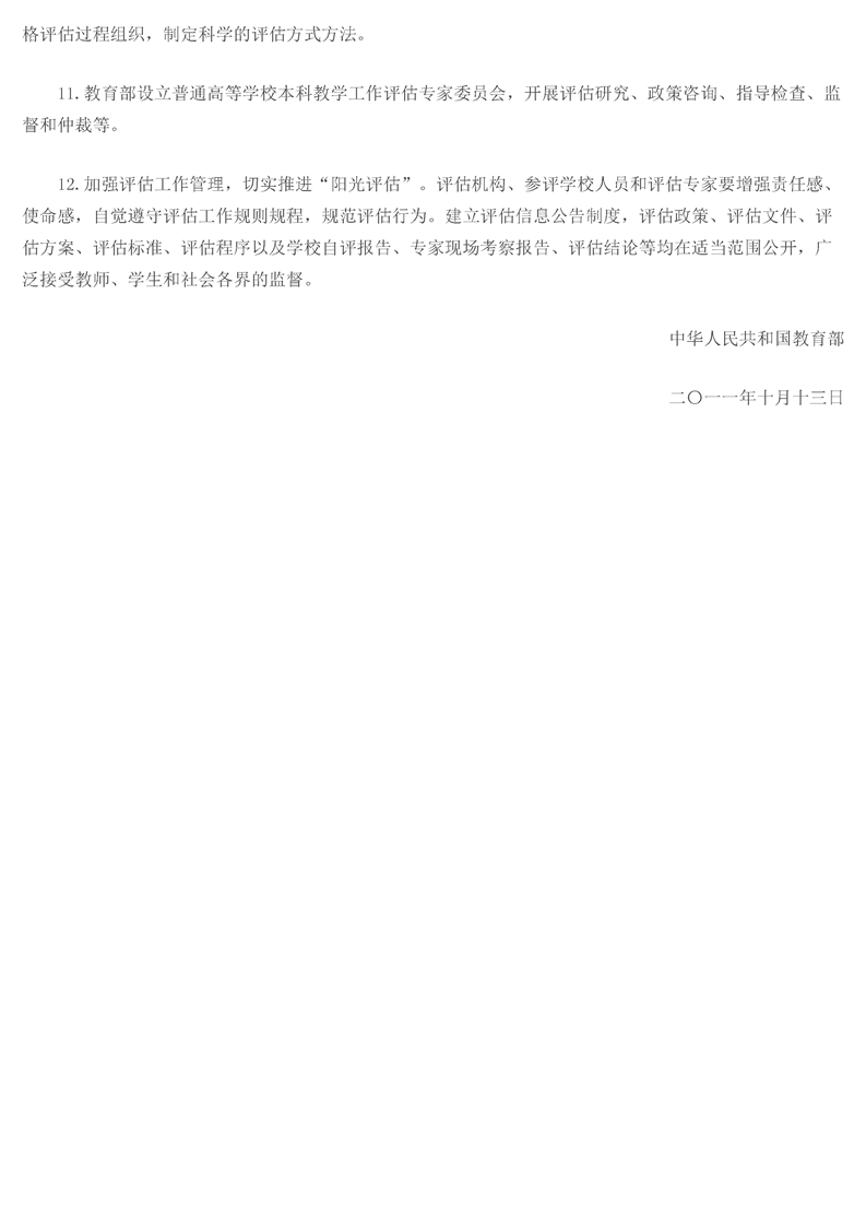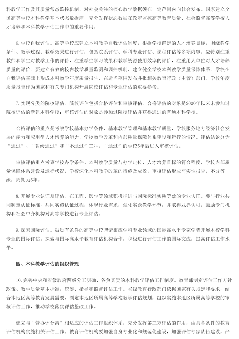 教育部关于普通高等学校本科教学评估工作的意见