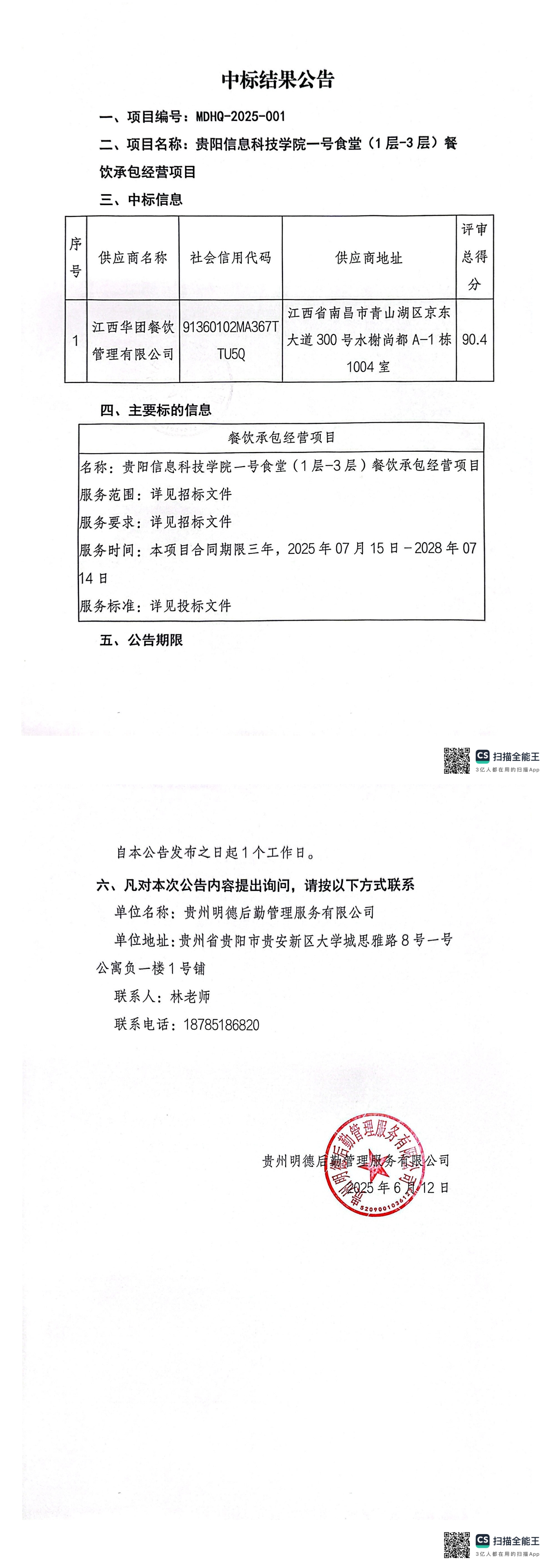 pp电子官方网站一号食堂(1层-3层)餐饮承包经营项目中标结果公告