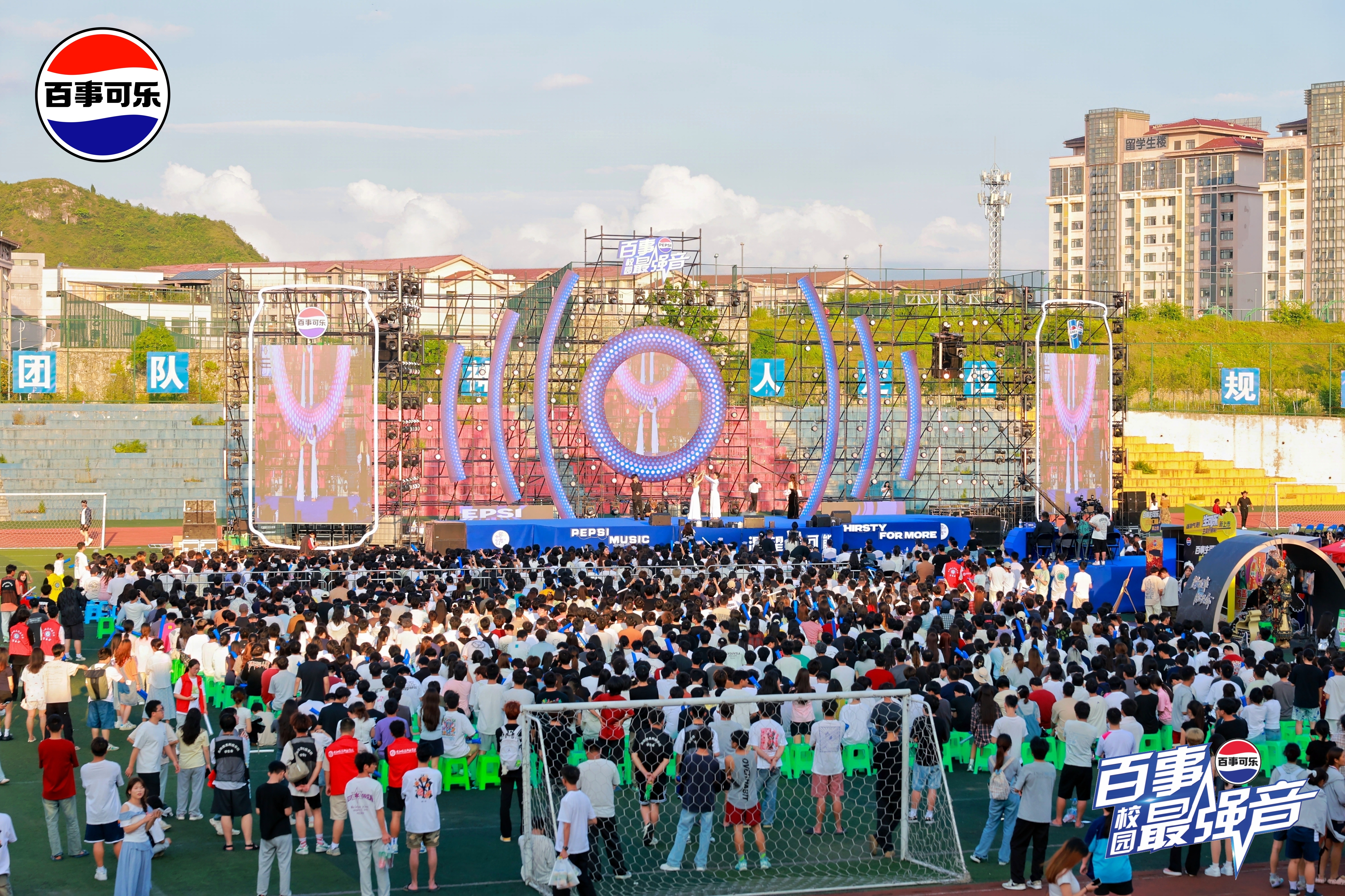 6月13日晚,由共青团pp电子官方网站委员会主办,校团委学生会、大学生社团管理中心承办,百事可乐贵州分公司发起的“百事校园最强音”总决赛在学校足球场火热开赛。pp电子校长唐建荣,党委副书记詹凯,副校长罗卫东,校长助理、数字传媒学院院长李锐锋及众多老师莅临活动现场。这场备受瞩目的音乐赛事,为热爱音乐的大学生搭建了展现自我的舞台,也为校园文化增添了浓墨重彩的一笔。