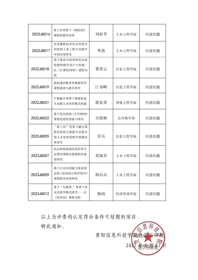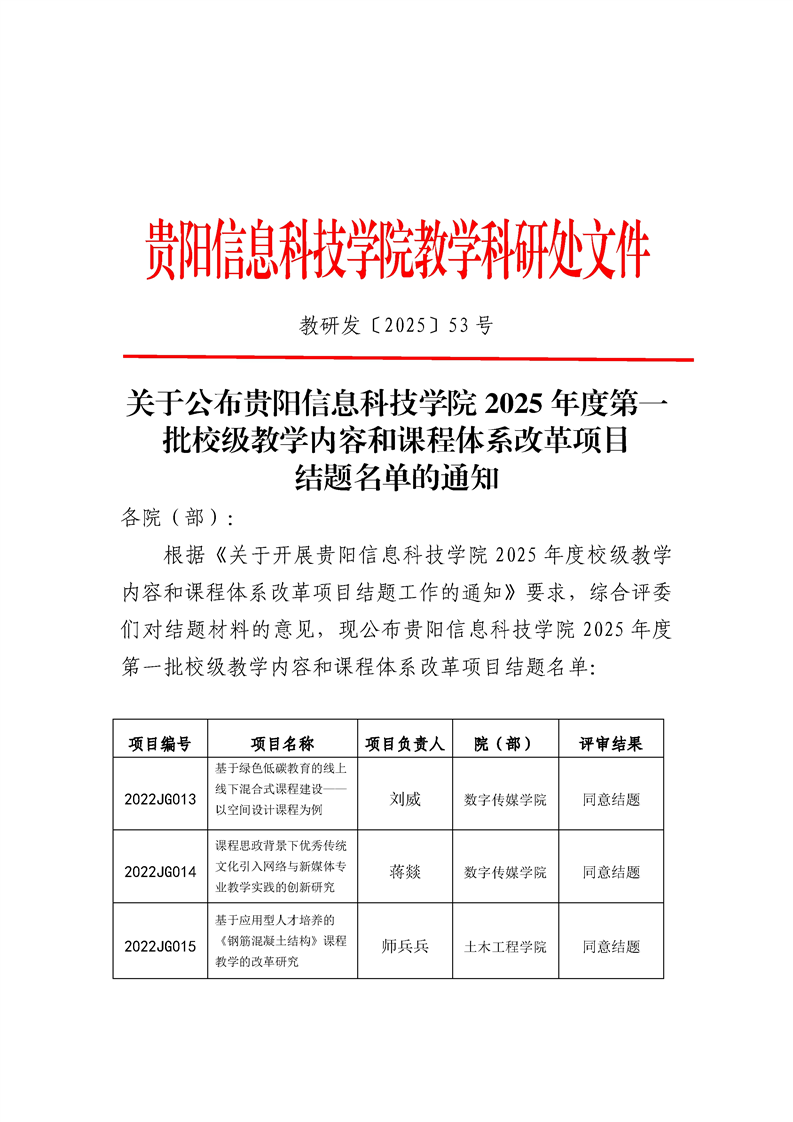 关于公布pp电子官方网站2025年度校级教学内容和课程体系改革项目结题名单的通知