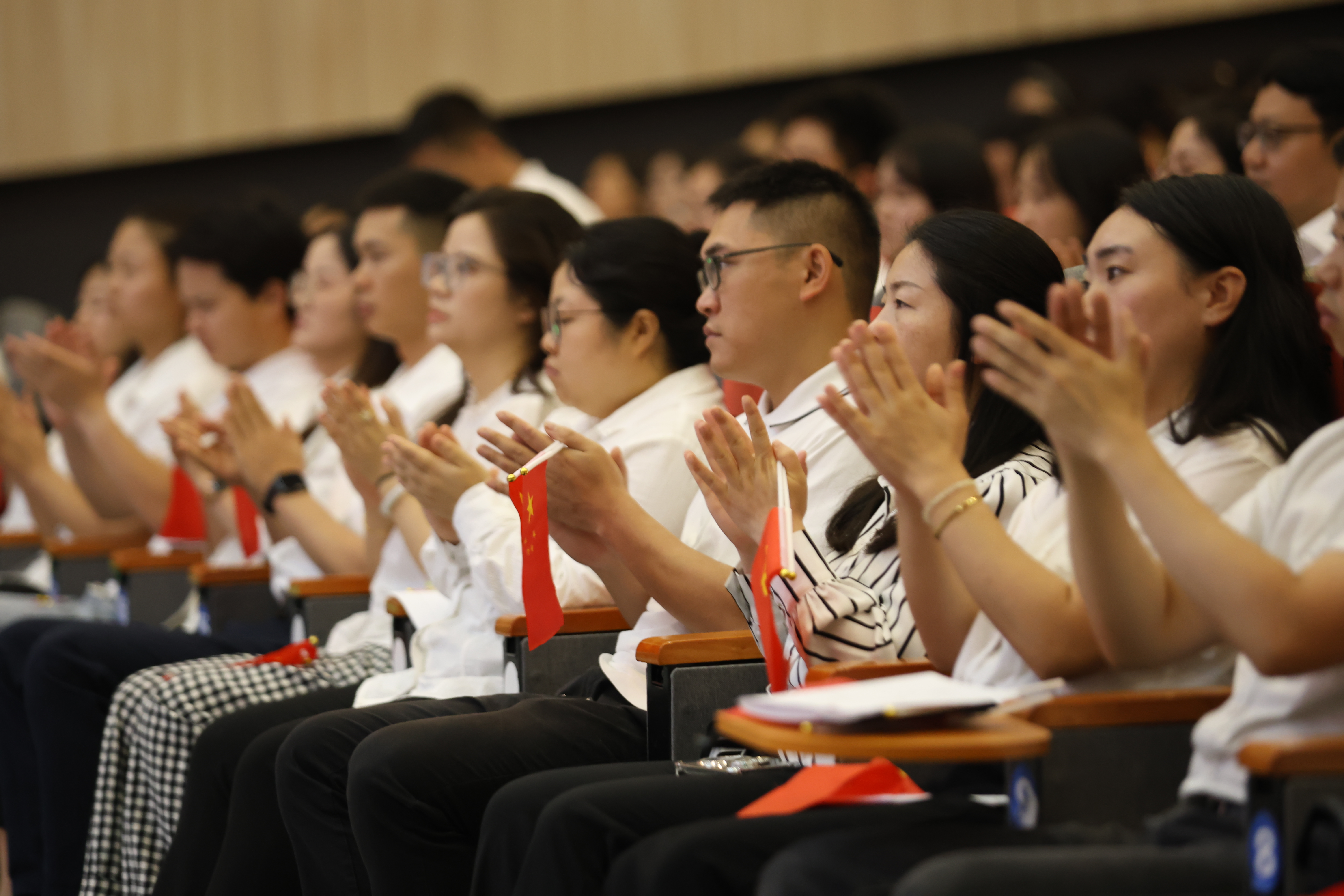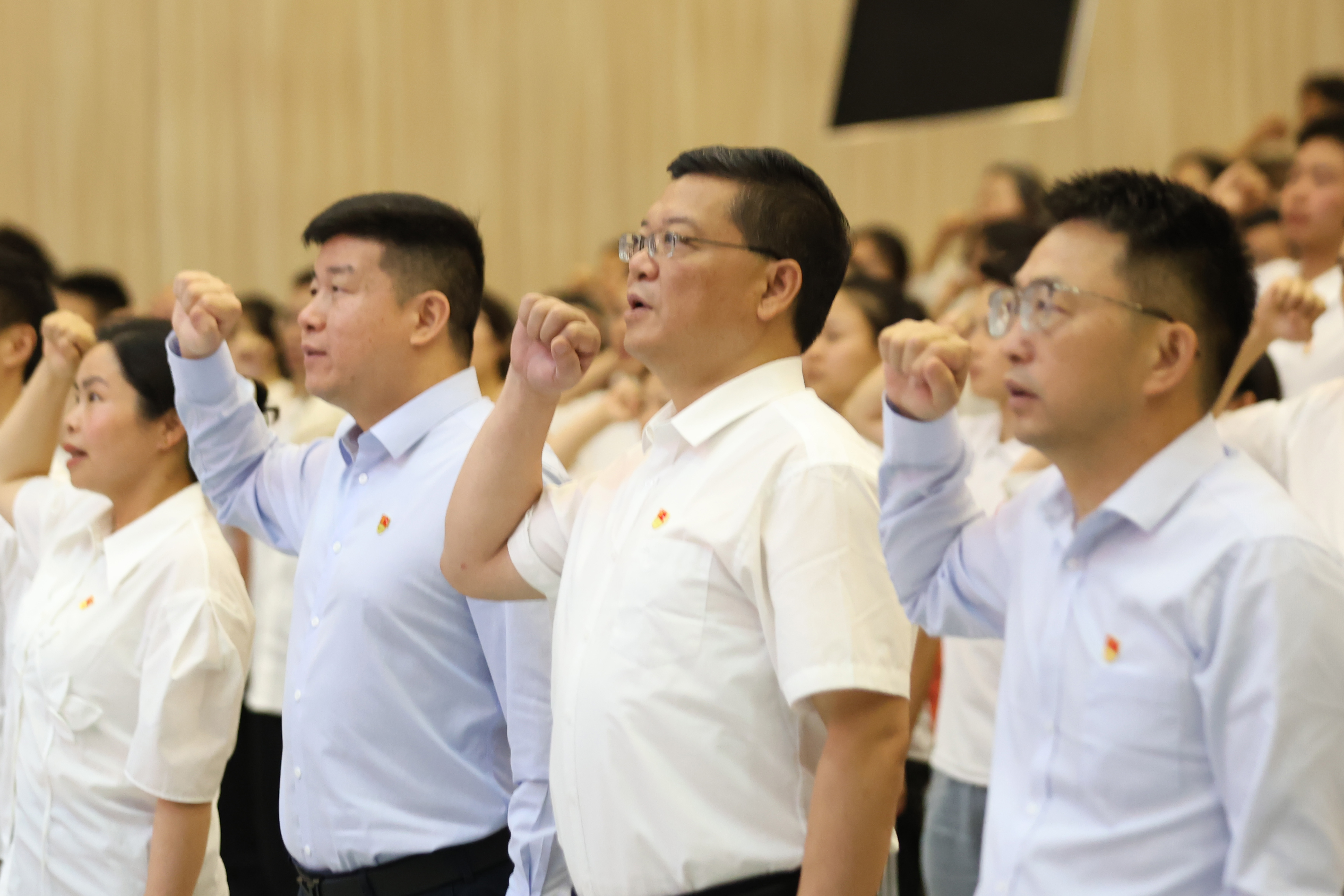 党委副书记詹凯带领全体师生党员重温入党誓词。铿锵誓言响彻会场,昭示着全体党员赓续红色基因、永葆政治本色的坚定信念。