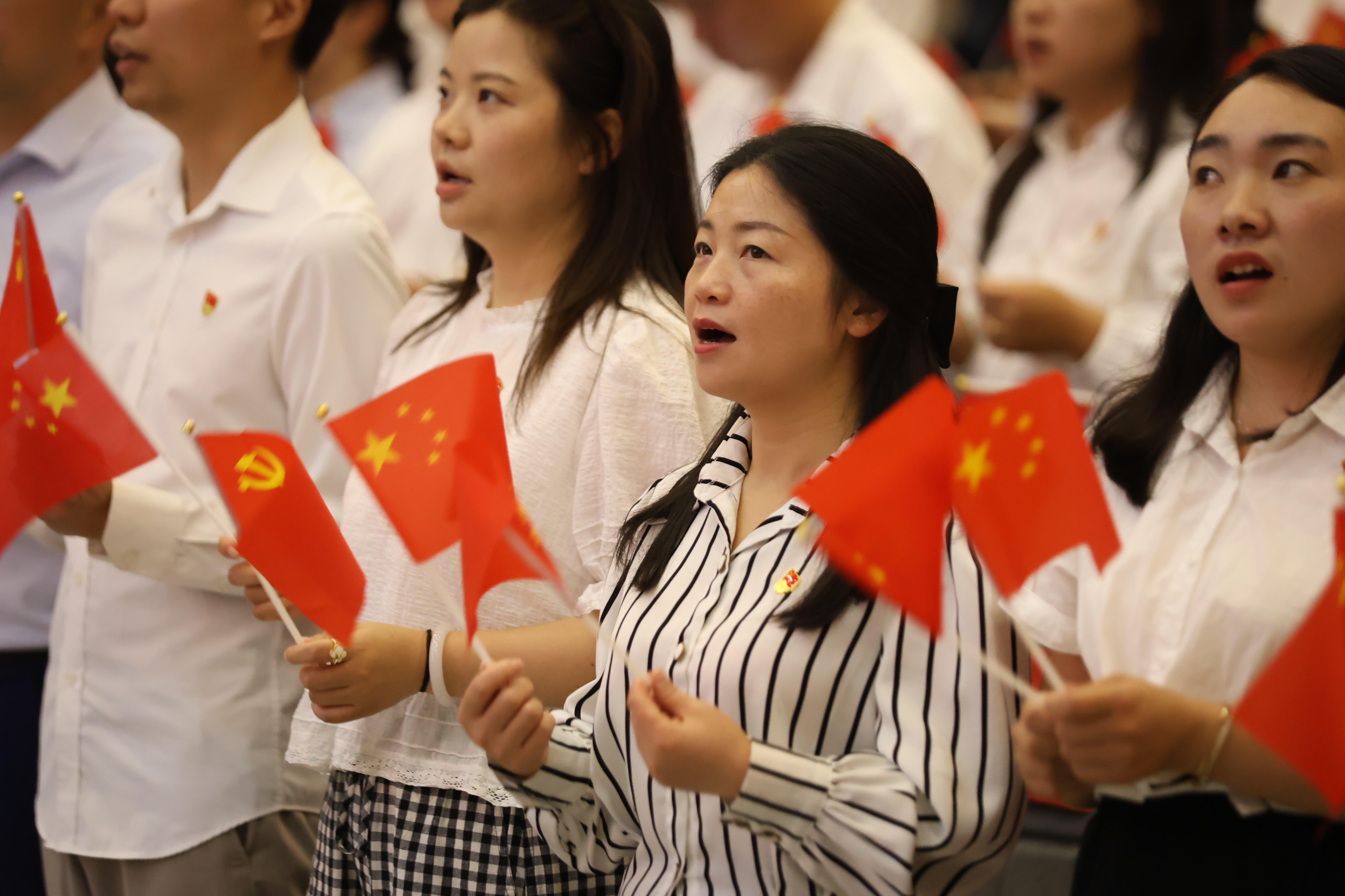 会议最后一个环节,全体与会人员合唱《没有共产党就没有新中国》,歌声嘹亮,激情满怀,唱出对党的无限忠诚与热爱。