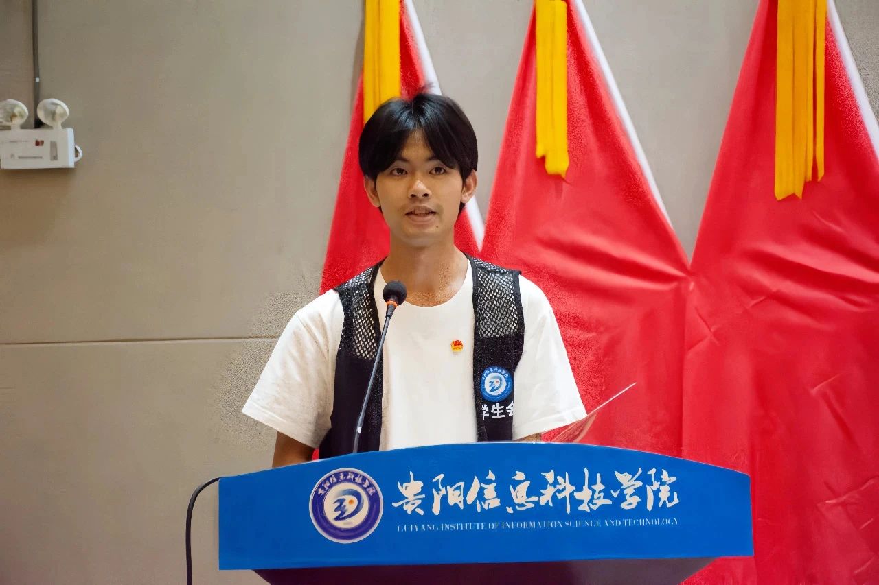 学生代表宋宏成上台发言,他表示,全体队员将以饱满的热情、严谨的态度投入到实践中,虚心向基层群众学习,在实践中锤炼本领,用青春汗水浇灌希望之花,圆满完成“三下乡”的各项任务,向学校和社会交出一份满意的答卷。