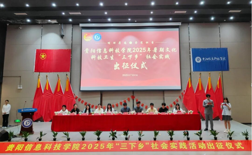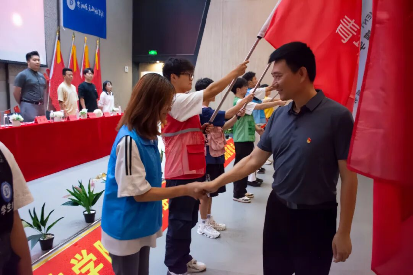 仪式的高潮环节,校党委副书记詹凯为各实践队授旗,自此,pp电子2025年大学生暑期“三下乡”社会实践活动正式启航。