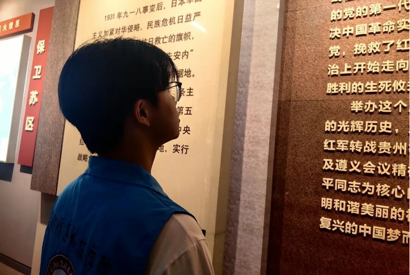 走进遵义会议会址,一面将军墙格外引人注目。墙上镌刻的一个个名字,都是为革命事业抛洒热血、奉献生命的英雄,他们用坚定的信仰,铺就了革命胜利的道路,让服务队的成员们深刻感受到信仰的磅礴力量。在陈列馆内,毛泽东的《长征》手书影印件静静陈列,“红军不怕远征难,万水千山只等闲”的豪迈字迹,彰显着红军战士在长征途中无畏艰难、勇往直前的英雄气概,仿佛带领大家穿越时空,亲眼目睹那段波澜壮阔的革命岁月。