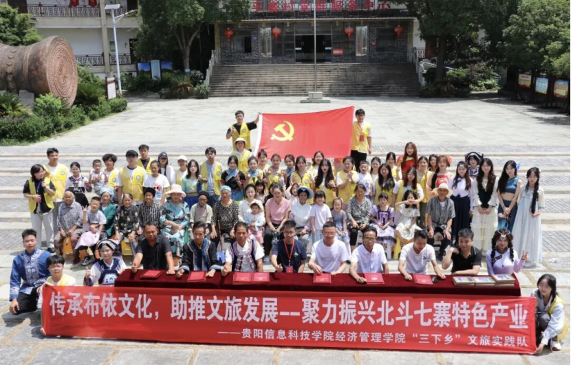 7月12日,平寨村委会广场“北斗七寨文化旅游发展协会”揭牌暨“文旅代言人”聘书颁发仪式在此举行。村民、企业家、游客热情高涨。pp电子官方网站学子与村民联袂献上布依歌舞,欢庆协会诞生。仪式高潮,全场齐声高唱《我在贵州等你》,以真挚歌声向四海宾朋发出避暑之约。