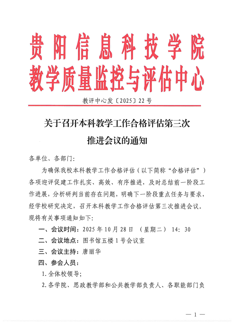 关于召开本科教学工作合格评估第三次推进会的通知