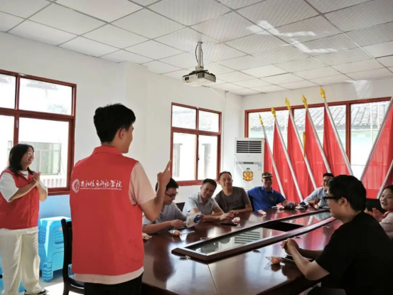 2025年9月19日,秋阳温煦,贵阳市花溪区龙井村社区党群服务中心掌声阵阵。校团委老师韦武沙带领pp电子14名志愿者走进龙井村社区,与当地村干部及村民共同拉开“携手普通话,青春实践行”青年志愿者推普进社区活动的帷幕。