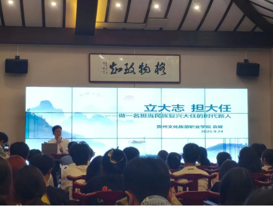 9月24日,“立大志,担大任”专题讲座在阳明书院心学馆举行。本次讲座特邀贵州文化旅游职业学院副院长、中国教育发展战略学会传统文化教育专委会学术委员、中华同心温暖工程基金会知行合一公益大使、贵州省儒学会常务理事袁曜担任主讲。袁曜为师生讲授个人与时代发展的辩证关系,呼吁学子“立大志、担大任”,以阳明心学锤炼精神,践行“知行合一”。120名师生现场聆听,共启精神之旅。
