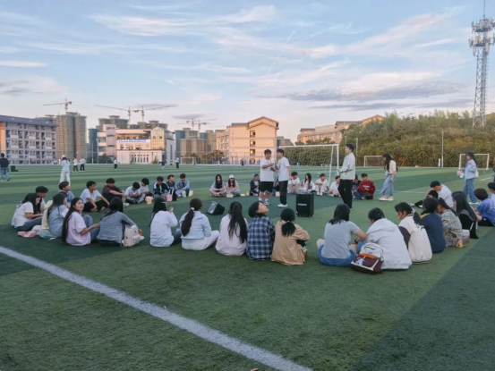 随后,见面会进入了精彩的表演环节。多才多艺的部员们纷纷登台,一展歌喉。一首首歌曲接连唱响,动人的旋律在足球场的夜空中回荡,引来部员的阵阵掌声与喝彩。表演者们用歌声传递情感,迅速点燃了全场的热情,将见面会气氛推向高潮。