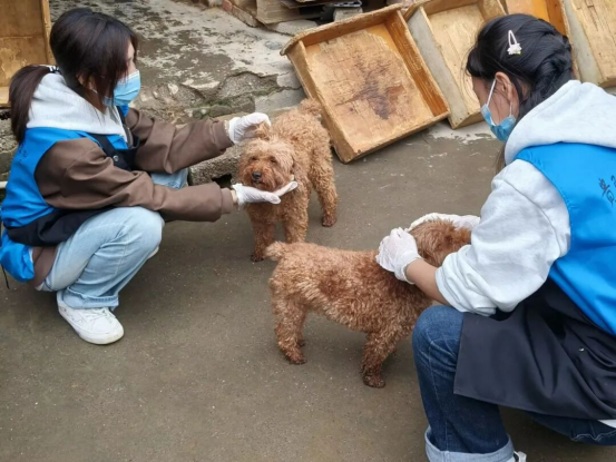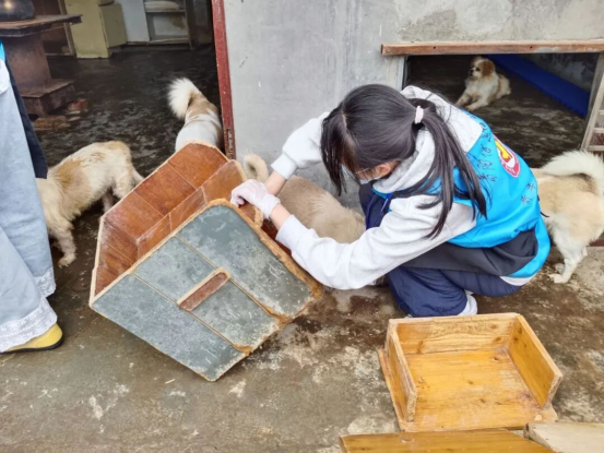 闲暇时,志愿者便与狗狗们欢乐互动。狗狗们个个热情似火,像一个个毛茸茸的小炮弹,总爱凑上前来贴贴蹭蹭,把志愿者们当成了最亲昵的玩伴。更有“醋精”狗狗上线,一旦发现没人“宠幸”自己,就会淘气地把别的狗狗挤开,那小模样让人忍俊不禁,也让志愿者们哭笑不得。