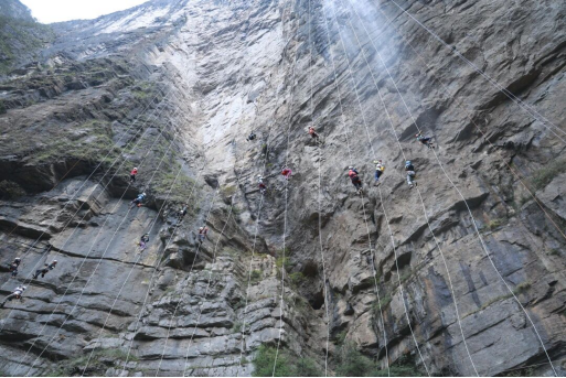 本次赛事的竞赛场地——七星山绝壁,以90度垂直形态屹立山间,400米长的竞赛绳索从悬崖顶端凌空垂落,垂直落差相当于130层高楼,对选手的体能、技术与心理素质均提出极高要求。