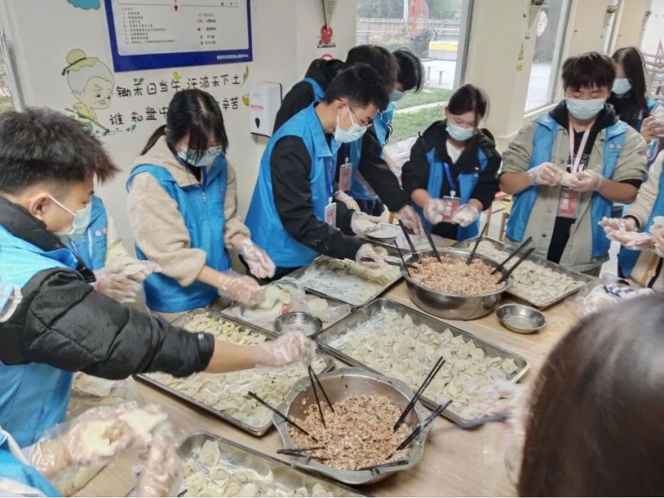 节目结束后,志愿者们兵分两路、分工协作。一队专注于包饺子,在食堂阿姨备好肉馅后,厨房里瞬间充满了欢声笑语;另一队则陪伴在老人身旁,静静地聆听他们讲述那些往昔的故事。