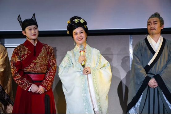 随后,导演雷欣分享了第五十场演出的特殊心情:“八年来,每一场演出都是与观众的一次思想对话,第五十场在贵科的落幕,更让我们感受到青年学子对传统文化的热爱。”她围绕“新婚之夜”“平叛之夜”“临终之夜”的剧情设计,详细述说用三个人生节点展现王阳明思想成长的创作思路,强调作品核心是传递“知行合一”的做人做事准则。