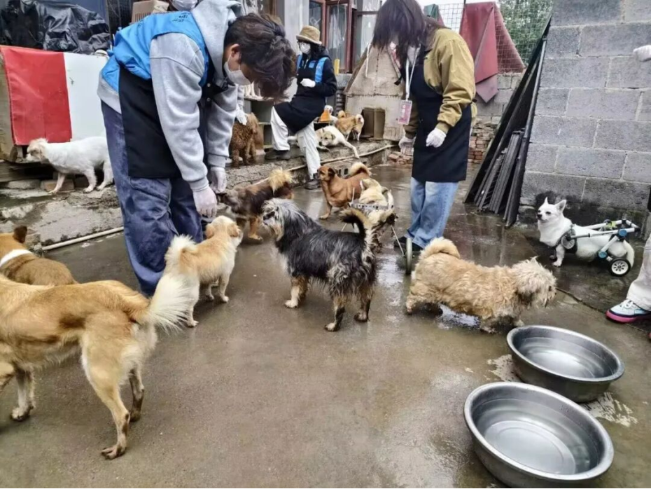 犬吠与笑声齐飞,奏响了一曲超暖的生命交响乐。听负责人唠嗑才知道,这些“毛孩”有的曾在街头饿肚子,有的因伤病被主人“丢包”,基地原来的木箱早就破得不成样,狗狗们经常受凉,还常年为狗粮、看病钱犯愁,每只狗狗的安稳日子,都靠基地人员天天坚守才维持着。这些故事让志愿者们真切感受到,这些小家伙对关爱有多渴望,也超庆幸能给它们换上“新家”。