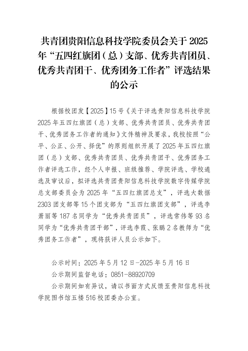 共青团pp电子官方网站委员会关于2025 年“五四红旗团(总)支部、优秀共青团员、 优秀共青团干、优秀团务工作者”评选结果的公示