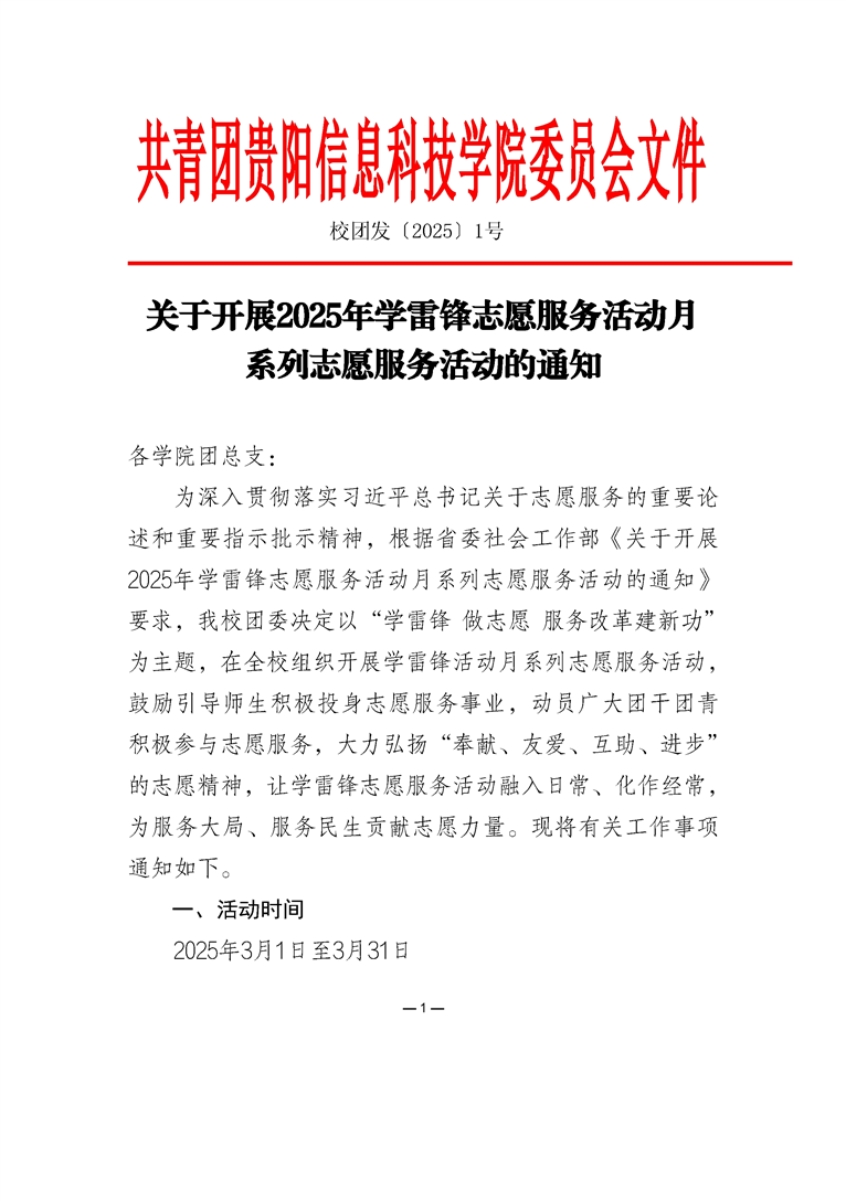 关于开展2025年学雷锋志愿服务活动月 系列志愿服务活动的通知