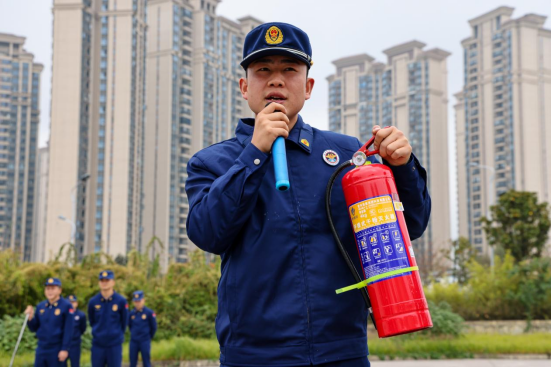 全体学生疏散至停车场安全区域后,消防器材实操演示与灭火体验随即展开。消防救援支队指战员聚焦日常常用的干粉灭火器,向师生系统讲解其工作原理、适用范围及日常维护关键要点。