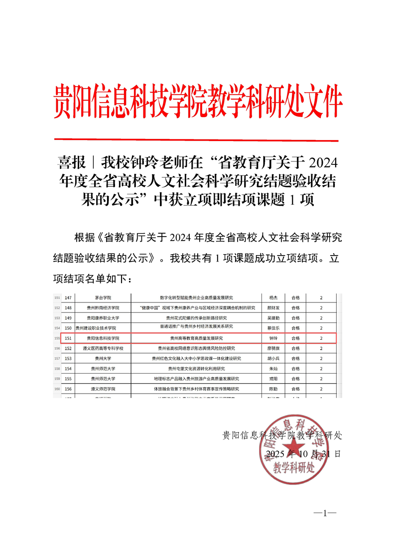 喜报∣pp电子教师在“2025年贵州省理论创新课题 (联合课题)”中获立1项课题
