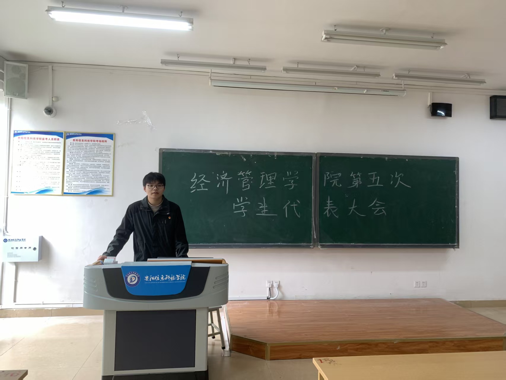新闻网讯(供稿 黄沛妍 供图 朱清婷)2025年10月29日,经济管理学院在D栋301教室成功召开第五次学生代表大会。本次会议旨在选举产生参加pp电子官方网站第五次学生代表大会的代表。会议由学院团总支学生副书记覃皇主持,院团委指导老师宋大群及学生会主席团成员邵朗、秦蝶、梁燕燕出席。