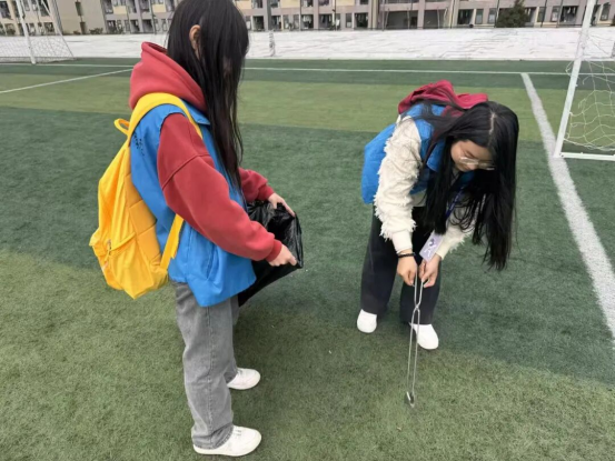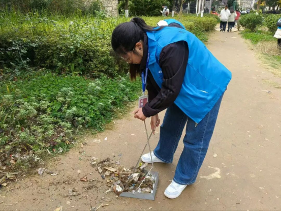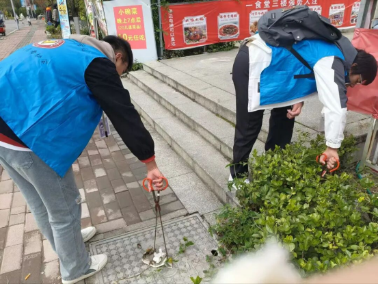 各小组奔赴责任区后,迅速投入忙碌。有的蹲在花坛边,细致捡拾藏匿在绿植间的烟头与食品包装;有的沿着主干道,将落叶与塑料瓶逐一归袋;还有的守在篮球场旁,把散落的纸屑一一清理。专注之余,遇到沉重杂物时,志愿者们总会默契搭手,让清洁工作高效又温暖。